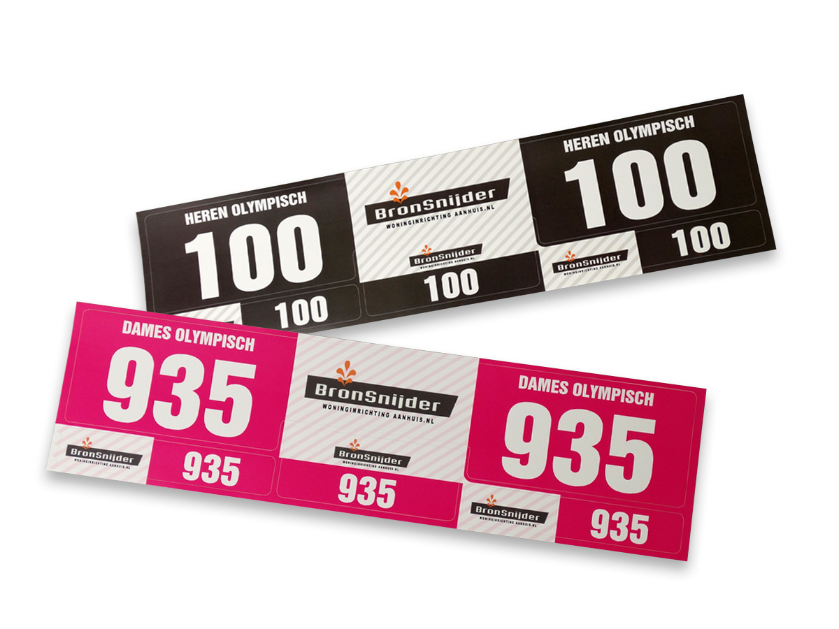 Unser Grafikteam übernimmt die Gestaltung kostenlos. Auf Wunsch können die Triathlon Multibogen mit variablen Daten wie Namen oder Nummerierungen versehen werden.