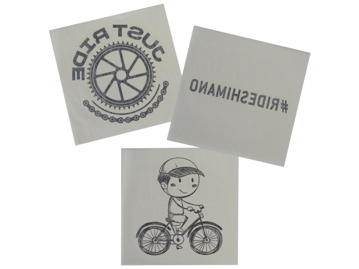 The fun tattoos are designed in colour, black or metallic colours (gold, silver or bronze). Optionally with a white background. Choose from different sizes: the dimensions refer to the paper on which the tattoos are printed; the fun tattoos are five mm narrower on each side.